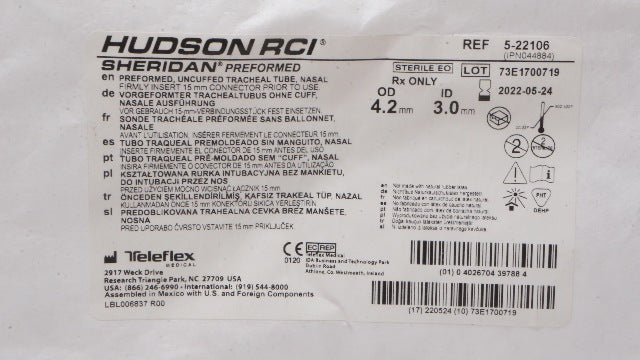 - Teleflex 5-22106 Hudson RCI Sheridan Preformed Uncuffed Tracheal Tube (x)