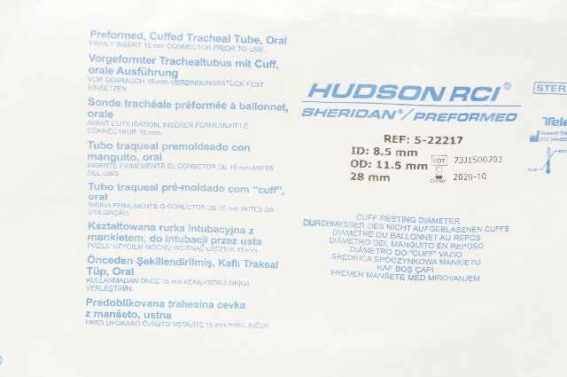 Teleflex 5-22217 Hudson RCI Sheridan Preformed Tracheal Tube 8.5ID x 11.5mmOD(x)
