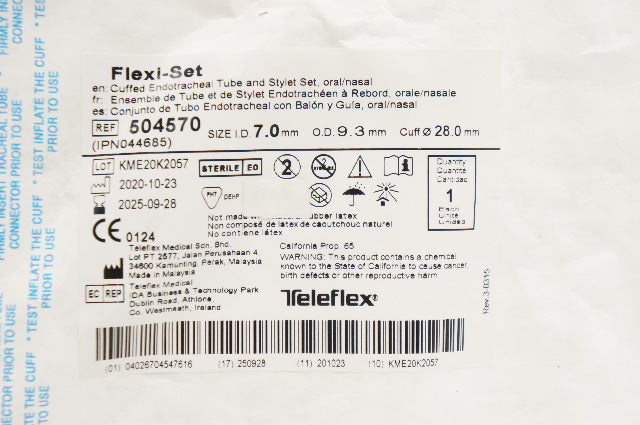 - Teleflex 504570 Flexi-Set Cuffed Endotracheal Tube Stylet Set 7.0 x 9.3 x 28mm
