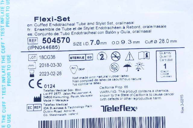 - Teleflex 504570 Flexi-Set Cuffed Endotracheal Tube & Stylet Set 7.0mm x 9.3mm