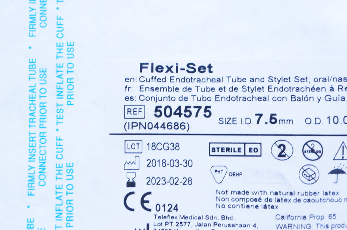 Teleflex 504575 Flexi-Set Endotracheal Tube And Stylet 7.5 ID x 10.0 OD x 28.0mm