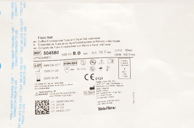 - Teleflex 504580 Cuffed Endotracheal Tube & Stylet Set 8.0mmID x 10.7mmOD x 30mm
