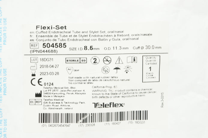 - Teleflex 504585 Flexi-Set Cuffed Endotracheal Tube 8.5mm x 11.3mm x 30.0mm