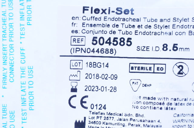 Teleflex 504585 Flexi-Set Endotracheal Tube & Stylet Set 8.5 ID x 11.3 OD x 30mm