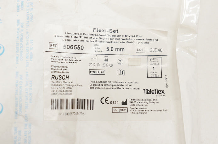 - Teleflex 506550 Flexi-Set Uncuffed Endotracheal Tube and Stylet Set 5.0mm (x)