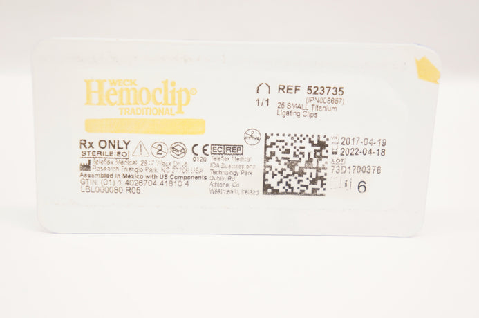- Teleflex 523735 Weck Hemoclip Traditional 25 Small Titanium Ligating Clips (x)