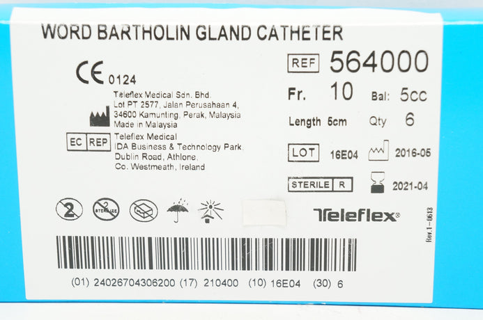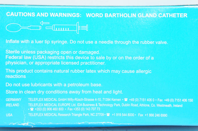 Teleflex 564000 Word Bartholin Gland Catheter 10Fr x 5cm, 5cc