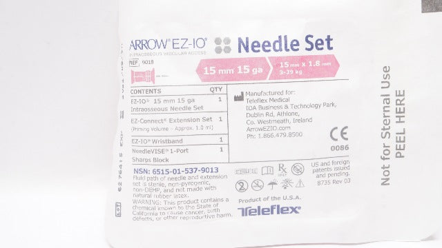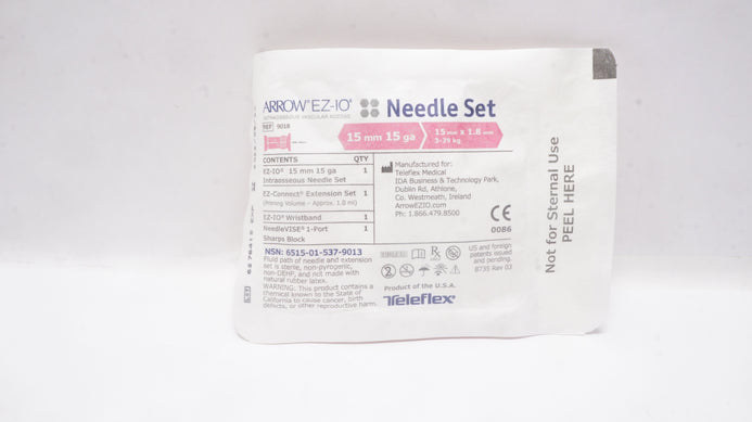 - Teleflex 9018 Arrow EZ-IO Intraosseous Ndle Set 15mm x 15Ga, 3-39kg (x)
