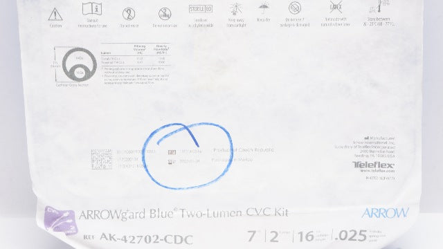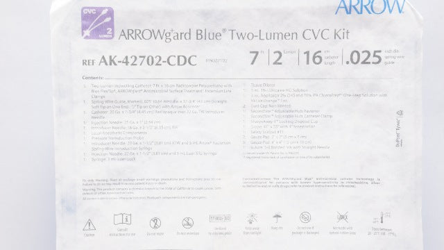 - Teleflex AK-42702-CDC Arrowgard Blue Two-Lumen CVC Kit 7Fr x 16cm x .025inch(x)