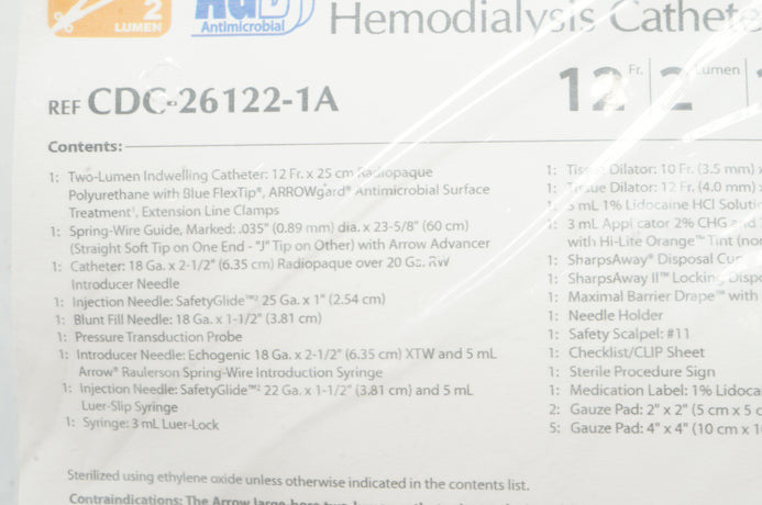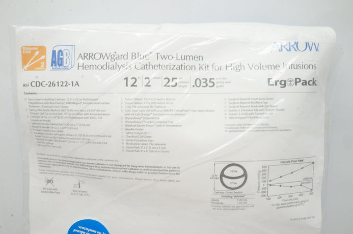 - Teleflex CDC-26122-1A ArrowWgard Blue Two-Lumen Hemodialysis Cath. Kit(x)