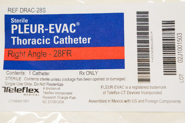 - Teleflex DRAC-28S PLEUR-EVAC Thoracic Cath. Right Angle - 28Fr.