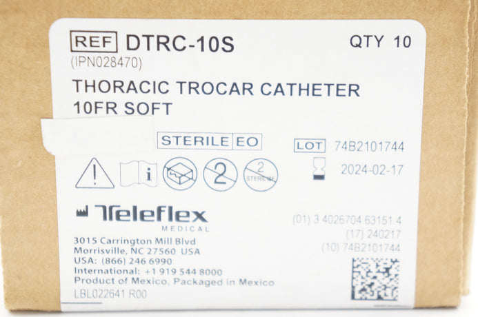 - Teleflex DTRC-10S Thoracic Trocar Catheter 10FR. Soft - Case of 10
