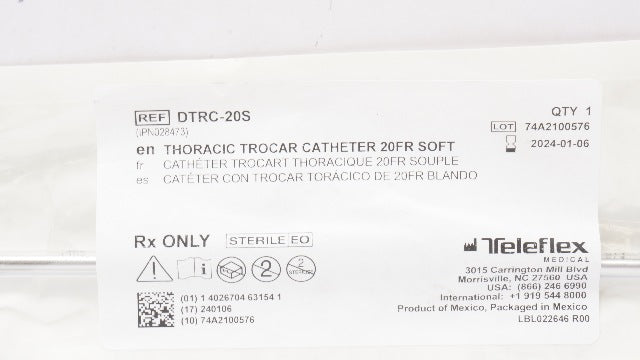 - Teleflex DTRC-20S Thoracic Trocar Cath. Soft 20Fr