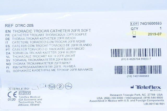 - Teleflex DTRC-20S Thoracic Trocar Cath. Soft 20Fr (x)