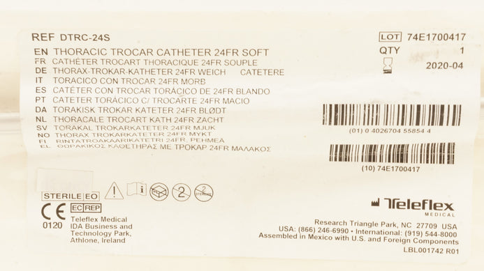 Teleflex DTRC-24S Thoracic Trocar Cath. 28 FR. Soft (x)