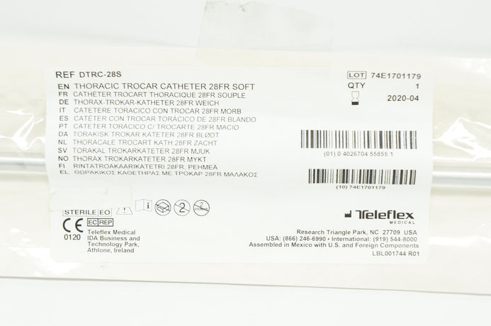 - Teleflex Medical DTRC-28S Thoracic Trocar Cath. Soft, 28Fr. (x)