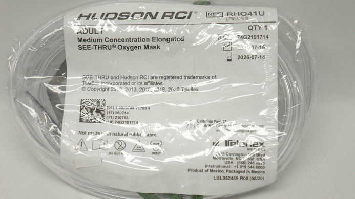 - Teleflex RH041U Hudson RCI Adult M Concentration Elongated Oxygen Mask