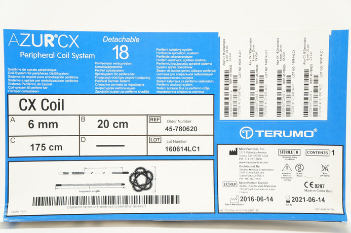 - Terumo 45-780620 AZUR CX Peripheral Coil System, 18 Detachable, 6mm/20cm (x)