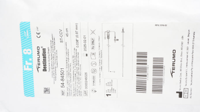 Terumo 54-84501 Destination Peripheral Guiding Sheath 8Fr x 45cm x 0.038inch (x)
