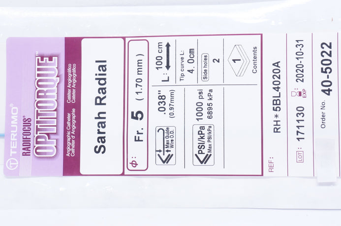 - Terumo 5BL4020A Radifocus Optitorque Angiographic Catheter Sarah Radial 5Fr (x)