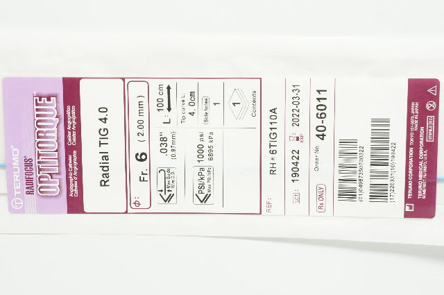 Terumo 6TIG110A Radifocues Optitorque Angiographic Catheter 6Fr. x 100cm