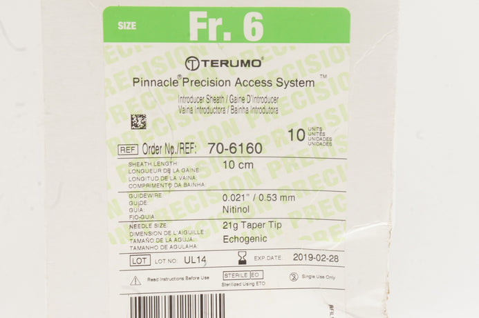 - Terumo 70-6160 Pinnacle Precision Access System 6Fr x 10cm - Box of 10 (x)