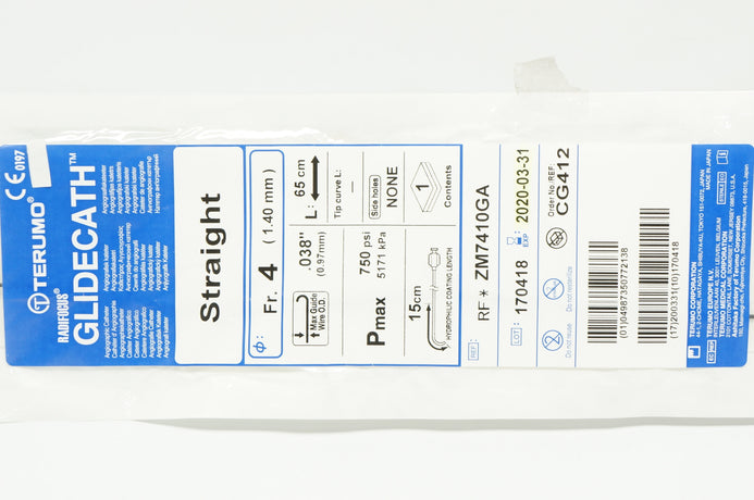 - Terumo CG412 Glidecath Angiographic Cath. Straight Fr4 x .038inch x 65cm (x)
