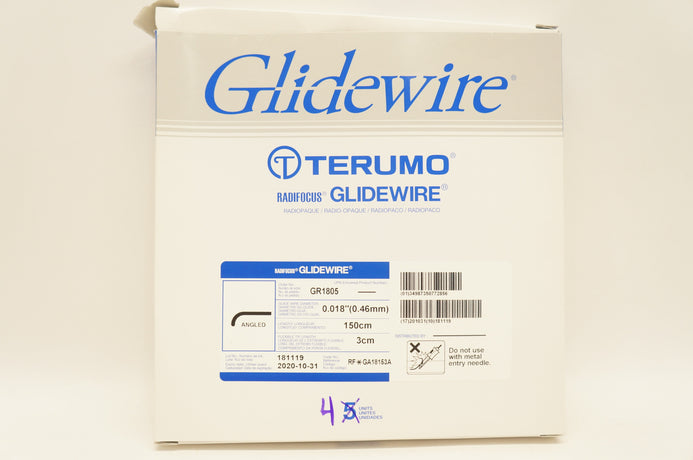 - Terumo GR1805 Radifocus Glidewire Radiopaque Angled 0.018inx150cmx3cm-Box of4(x)