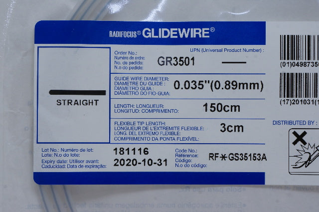 - Terumo GR3501 Radiofocus Glidewire Straight 0.035inch x 150cm x 3cm