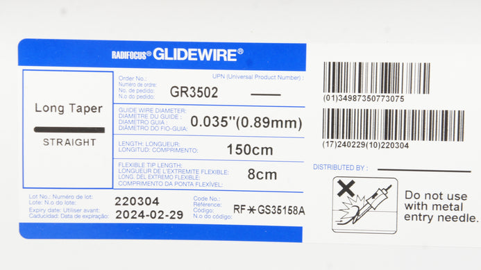 - Terumo GS35158A Radiofocus Glidewire Straight,Long Taper 0.035In (x) - Box of 4