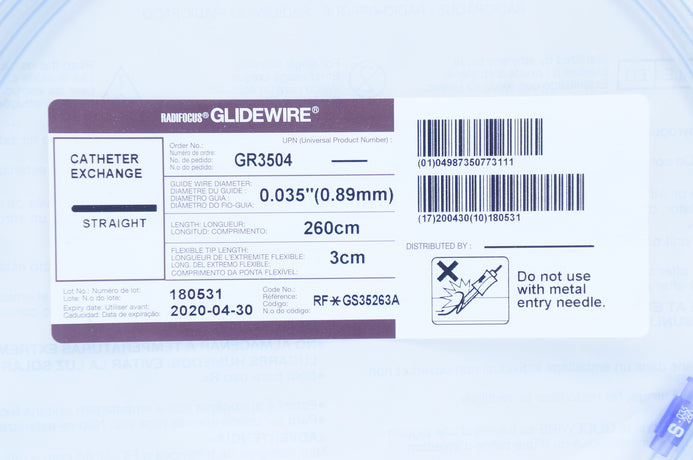 Terumo GS35263A Radifocus Glidewire Catheter Exchange Straight 0.035 inch x 260 cm. x 3 cm.