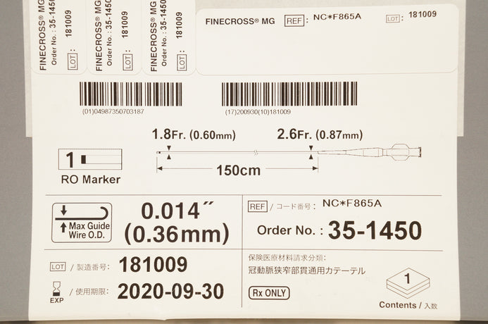 - Terumo NC*F865A Finecross MG Coronary Micro-Guide Catheter 0.04inch (x)