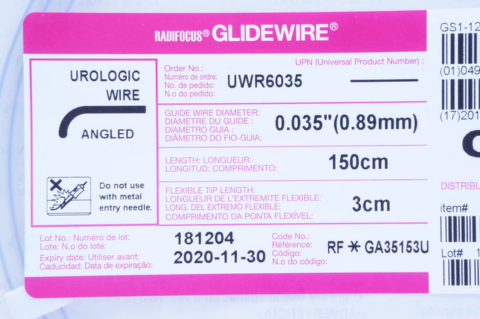 - Terumo RA*GA35153U RadiFocus Glidewire Urologic Wire Angled .035in x 150x3cm (x)