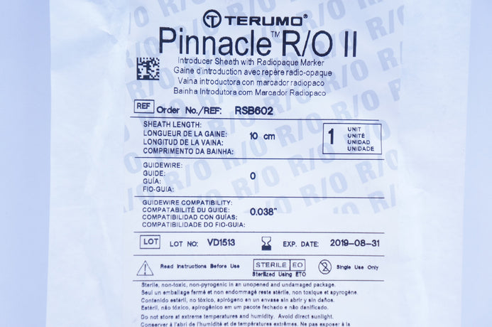 - Terumo RSB602 Pinnacle R/O II Introducer Sheath W/Radiopaque Marker 6Fr. (x)