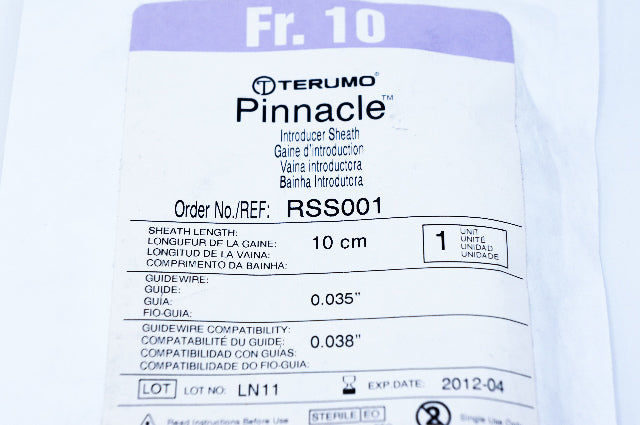 - Terumo RSS001 Pinnacle Introducer Sheath 10cm x 0.035inch x 0.038inch (x)