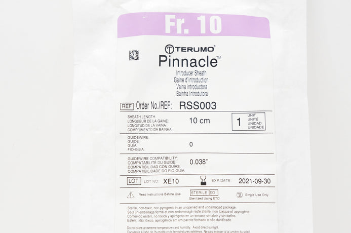 - Terumo RSS003 Pinnacle Introducer Sheath 10Fr x 0.038inch x 10cm