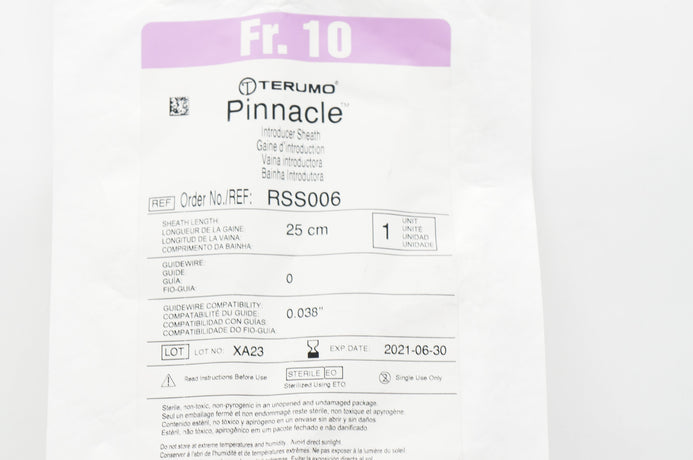 - Terumo RSS006 Pinnacle Introducer Sheath, 10Fr, 0.038inch x 25cm (x)