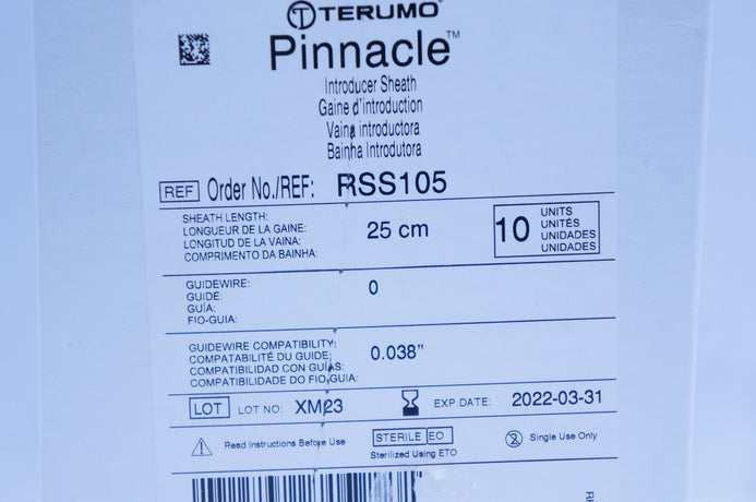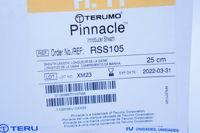 - Terumo RSS105 Pinnacle Introducer Sheath 11Fr, 25cm x 0.038inch - Box of 7