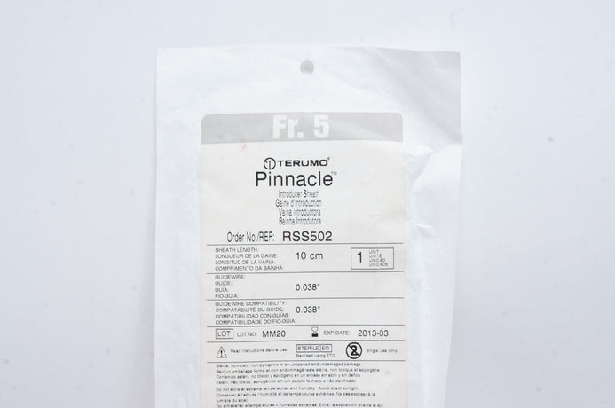 - Terumo RSS502 Pinnacle Introducer Sheath 5Fr. x 0.038inch x 10cm (x)