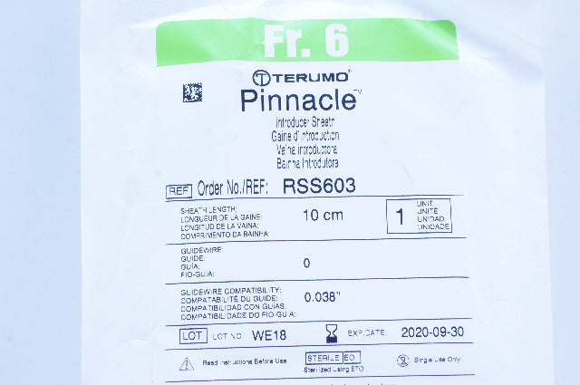 - Terumo RSS603 Pinnacle Introducer Sheath 6Fr x 10 cm x 0.038 inch (x)
