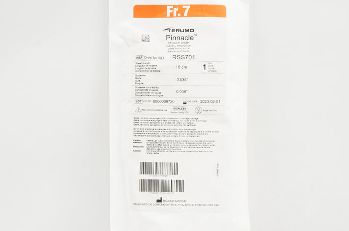 - Terumo RSS701 Pinnacle Introducer Sheath 7Fr x 10cm x 0.035inch x 0.038inch