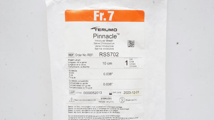 - Terumo RSS702 Pinnacle Introducer Sheath 7Fr x 10cm x .038inch x .038inch (x)