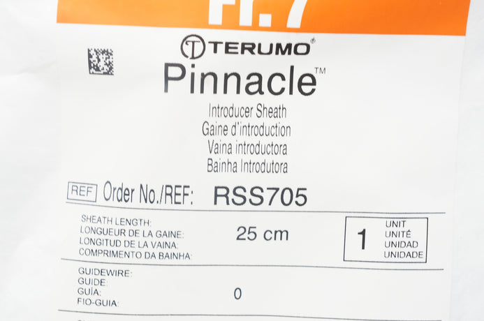 Terumo RSS705 Pinnacle Introducer Sheath 7F x 25cm x 0.038 inch (x)