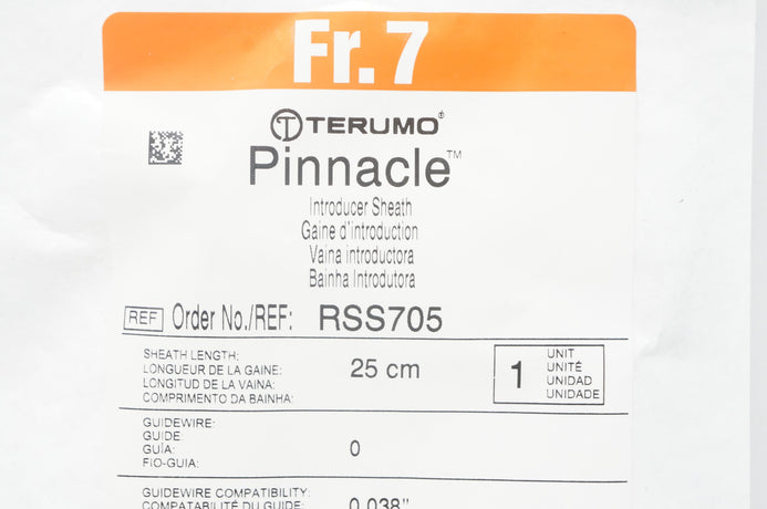 - Terumo RSS705 Pinnacle Peripheral Introducer Sheath 7F x 25cm x 0.038 inch