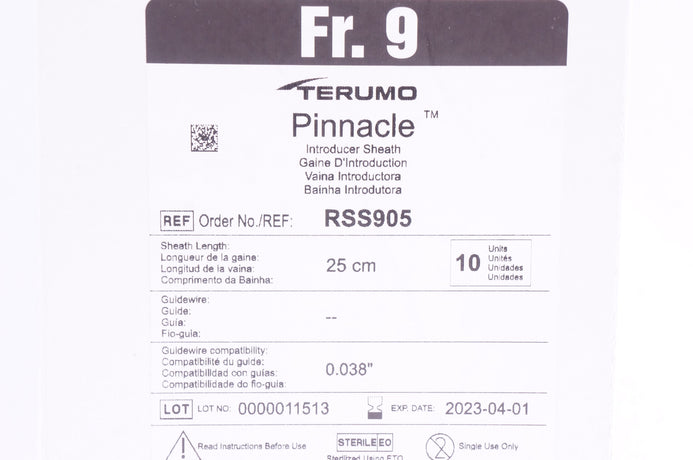 - Terumo RSS905 Pinnacle Introducer Sheath 9Fr. x 25cm - Box of 10