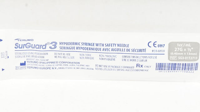 - Terumo SG3-01T2713 SurGuard Hypodermic Syringe W/Safety Needle 1cc,27G 1/2In