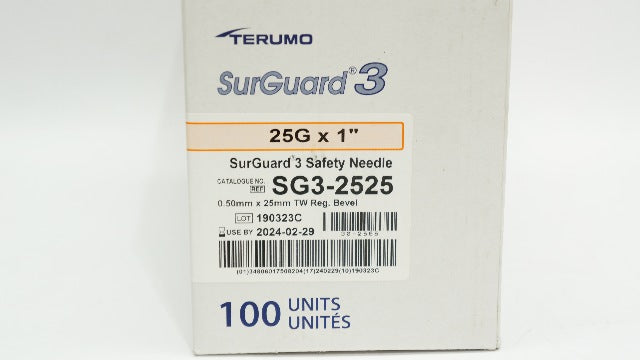 - Terumo SG3-2525 SurGuard 3 Safety Hypodermic Ndle 25G x 1inch - Box of 88