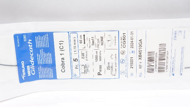 - Terumo XB4510GA Glidecath Cobra 1 Angiographic Cath. 5Fr x .038inch x 65cm (x)