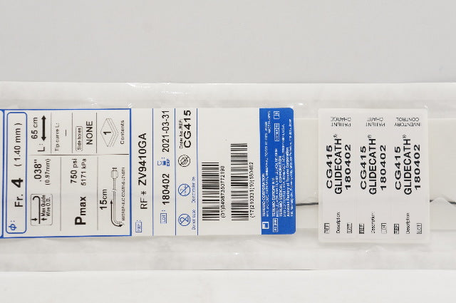 - Terumo ZV9410GA Radifocus Glidecath Angiographic Cath. 4Fr. x 65cm x .038inch(x)