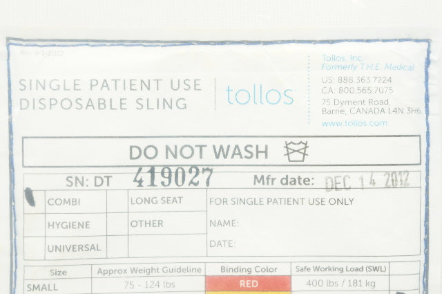 - Tollos T015C-PSS Disposable Combi Sling, Medium 125-174 lbs, Yellow 400 lbs